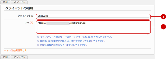 クライアント名を入力します(クライアント名には、「ChatLuck」など後で判別しやすい名称を設定することをおすすめします)。
