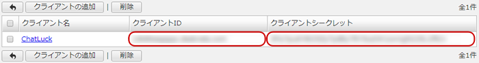 「クライアントID」と「クライアントシークレット」は後ほどChatLuck側の設定で利用するので控えておきます。
