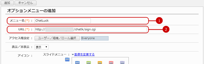 ※オプションメニューのアイコン設定についてはシステム管理マニュアルの 管理者設定>運用設定>メニュー設定>オプションメニューを追加する をご確認下さい。