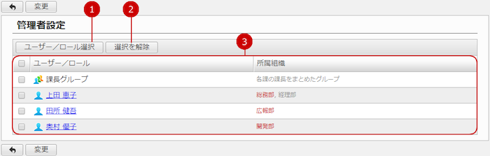 (ユーザー/ロール選択については、ユーザーズマニュアルの すべての画面で共通の機能>ユーザー/組織/ロール選択 をご覧ください。)