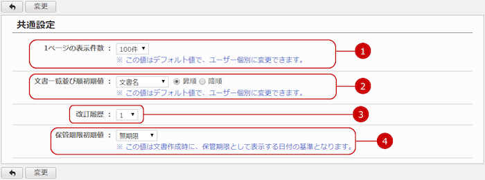 文書管理の共通設定ができます。
