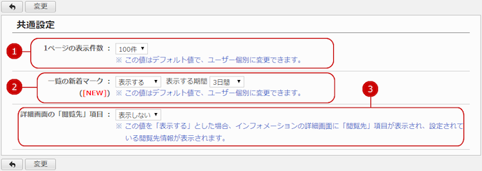 インフォメーションの共通設定ができます。