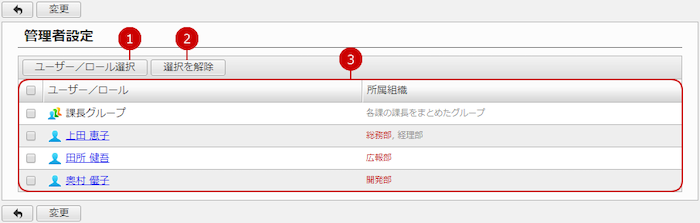 (ユーザー/ロール選択については、ユーザーズマニュアルの すべての画面で共通の機能>ユーザー/組織/ロール選択 をご覧ください。)