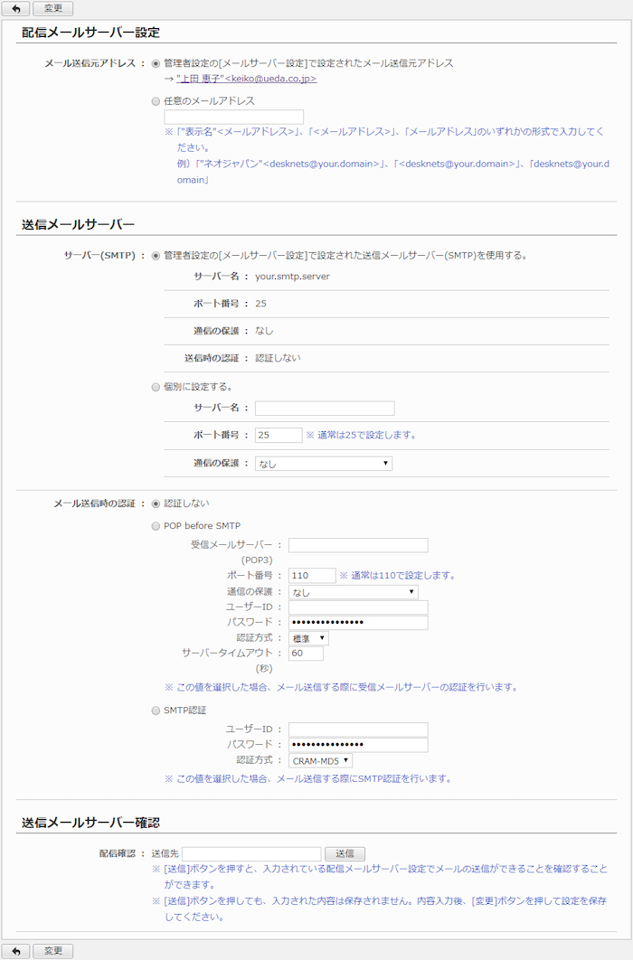 配信メールサーバーの詳しい設定方法は、システム管理マニュアルの
