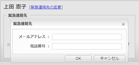 [緊急連絡先の変更]のリンクを押すと、緊急連絡先の入力ウィンドウが表示されます。