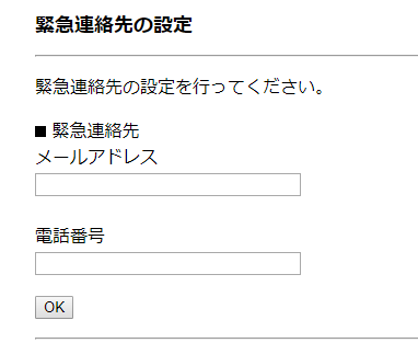 緊急連絡先を入力して[OK]ボタンを押してください。