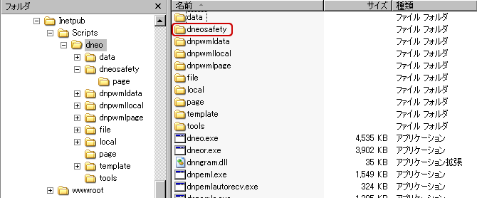 ■設定例:「dneosafety」フォルダをC:\Inetpub\Scriptsの中に移動する場合