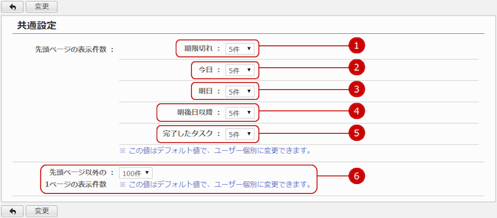 先頭ページ以外の1ページの表示件数の設定値が表示されます。